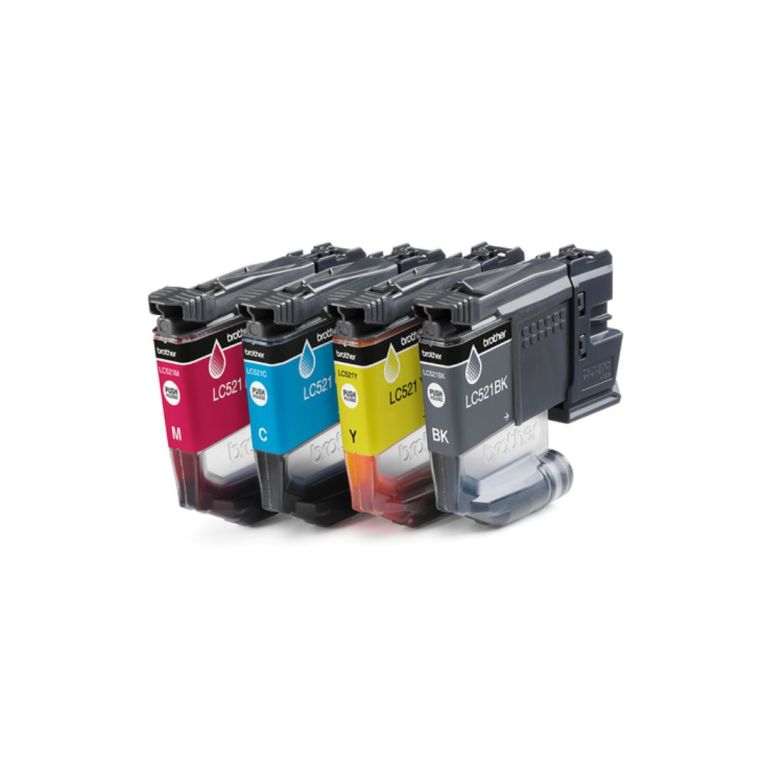 Brother LC521VAL Cartouche d'encre originale de - multipack. Type d'alimentation: Multi pack, Rendement par page d'encre de couleur: 500 pages, Couleurs d'impression: Noir, Cyan, Magenta, Jaune, Quantité: 4 pièce(s), Rendement par page de l'encre noire: 500 pages