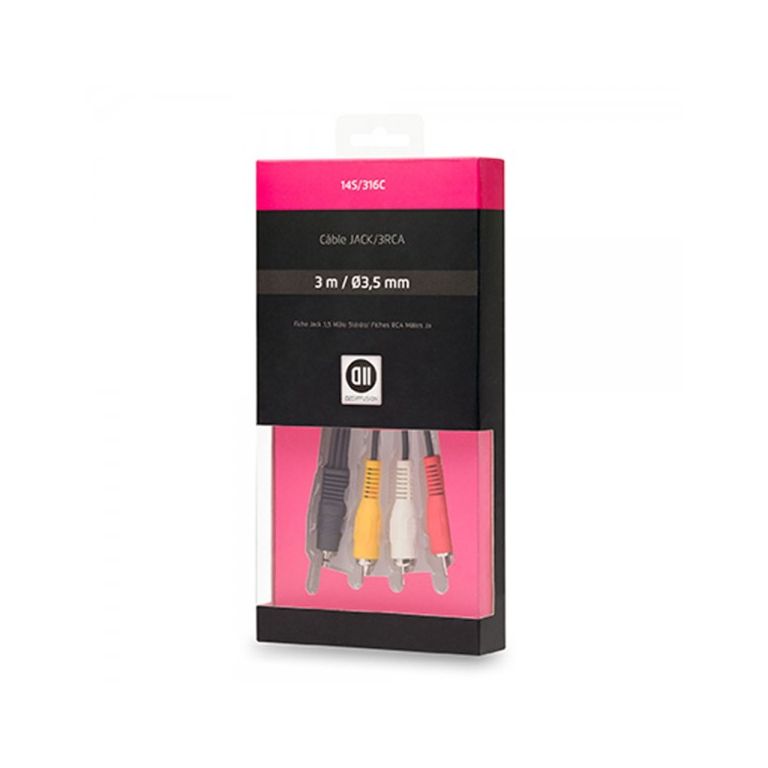 D2 Diffusion D2JK3RCA150. Connecteur 1: 3,5mm, Genre de connecteur 1: Mâle, Connecteur 2: 3 x RCA, Genre de connecteur 2: Mâle, Longueur de câble: 1,5 m, Couleur du produit: Noir