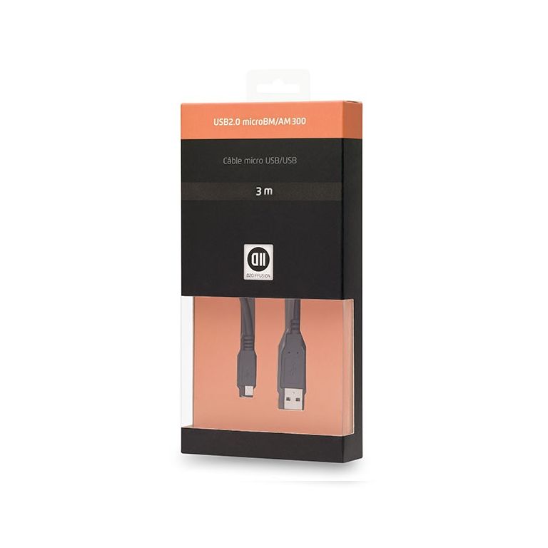 D2 Diffusion D2MICROUSB300. Longueur de câble: 3 m. Connecteur 1: USB A, Connecteur 2: Micro-USB B, Version USB: USB 2.0, Couleur du produit: Noir