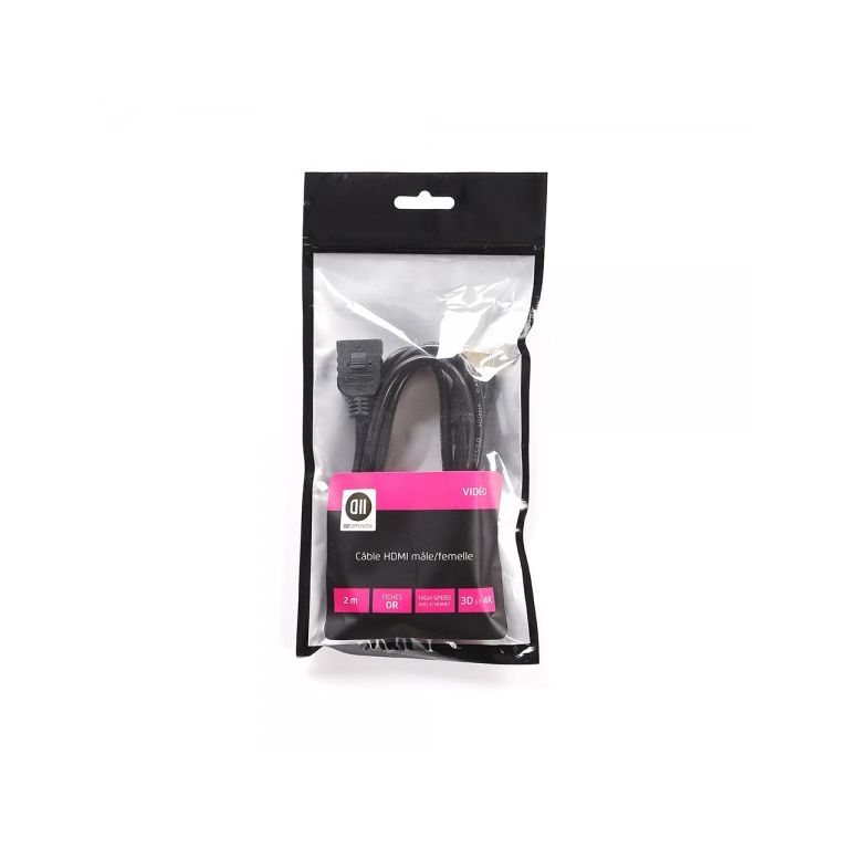 D2 Diffusion D2RALHDMI200SACH. Longueur de câble: 2 m, Connecteur 1: HDMI Type A (Standard), Genre de connecteur 1: Mâle, Connecteur 2: HDMI Type A (Standard), Genre de connecteur 2: Femelle, Couleur du produit: Noir