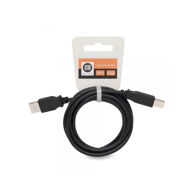 D2 Diffusion Câble USB 2.0 A mâle/B mâle 1.80 m Accroche cavalier. Longueur de câble: 1,8 m. Connecteur 1: USB A, Connecteur 2: USB B, Version USB: USB 2.0, Couleur du produit: Noir