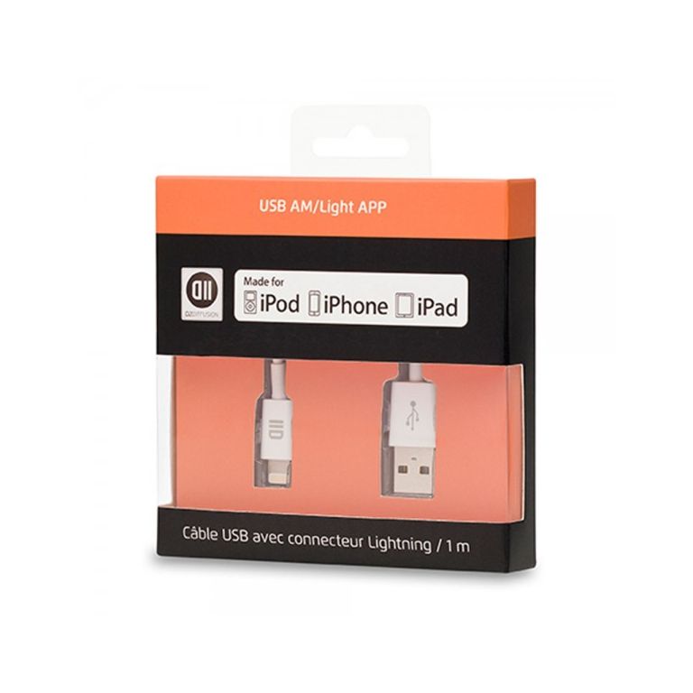 D2 Diffusion D2USBAPPLIGHT100B. Longueur de câble: 1 m, Connecteur 1: USB A, Connecteur 2: Lightning. Type d'emballage: Boîte, Quantité: 1 pièce(s)