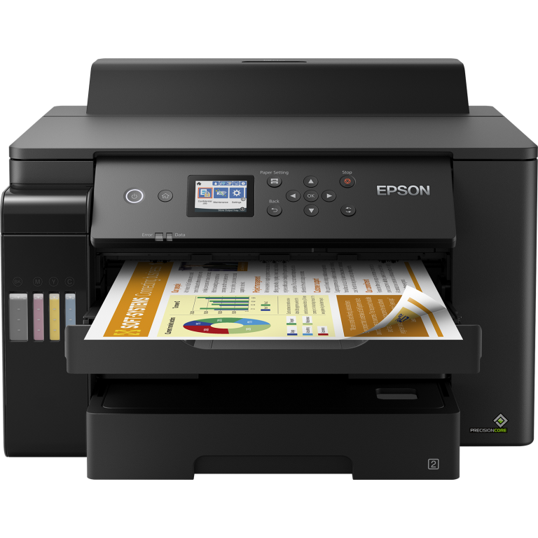 Faites plus en moins de temps\nCette imprimante rapide et efficace peut imprimer une première page en seulement 5½ secondes1. \n\nEcoTank A3+ monofonction\nLe modèle ET-16150 est conçu pour des impressions jusqu’au format A3+. L’écran LCD de 6,1 cm et ses touches fixes permettent de parcourir aisément le vaste éventail de fonctionnalités.\n\nÉconomies à long terme\nRéalisez des économies lors de chaque impression grâce à ce modèle EcoTank qui offre un coût d’impression par page incroyablement bas. Contrairement à d’autres imprimantes, ce modèle EcoTank est équipé de bouteilles d’encre économiques.\n\nImpression de qualité professionnelle\nL’encre EcoTank série 113 est composée exclusivement d’encres pigmentaires pour des impressions résistantes aux surligneurs et sans maculage. Grâce à cette encre fiable et de haute qualité, vous avez la garantie de bénéficier d’impressions aux textes nets et clairs et aux couleurs éclatantes. Avec un jeu d’encre de remplacement, vous pouvez imprimer jusqu’à 7 500 pages en noir et 6 000 pages en couleur2.\n\nImprimez où que vous soyez\nAvec EcoTank, imprimez directement depuis des appareils mobiles, tablettes et ordinateurs portables. Avec le Wi-Fi et Wi-Fi Direct, envoyez vos documents à imprimer depuis des appareils mobiles via l’application Epson iPrint3. \n\nSimplicité d’utilisation et fiabilité\nLe remplissage des réservoirs d’encre est simple grâce à des bouteilles d’encre refermables et qui évitent les fuites. La technologie unique Zéro Chaleur PrecisionCore d’Epson offre une grande fiabilité, des temps d’arrêt réduits et un impact environnemental moindre. Sans temps de préchauffage nécessaire, la première page est imprimée rapidement en consommant moins d’électricité.