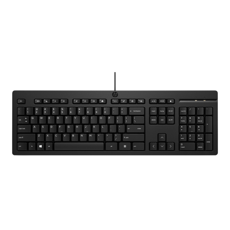 HP KBD 125 WD. Facteur de forme du clavier: Taille réelle (100 %), Technologie de connectivité: Avec fil, Interface de l'appareil: USB, Interrupteur à clé de clavier: Clavier à membrane. Couleur du produit: Noir
