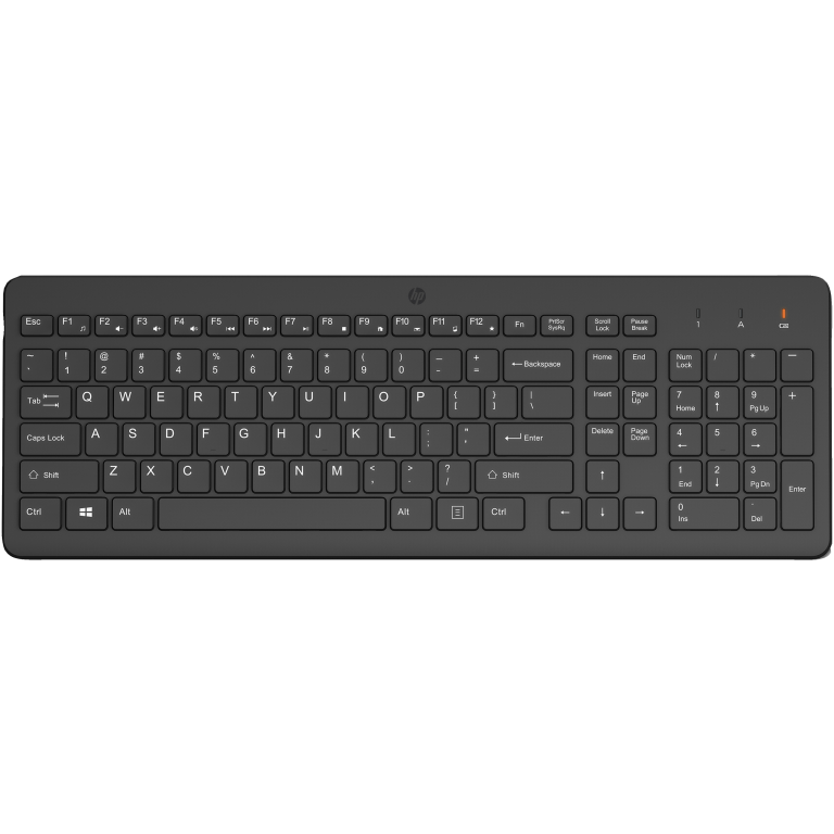 HP 225 Wireless Keyboard - Tastatur. Facteur de forme du clavier: Taille réelle (100 %), Technologie de connectivité: Sans fil, Interface de l'appareil: RF sans fil, Utilisation recommandée: Universel. Couleur du produit: Noir