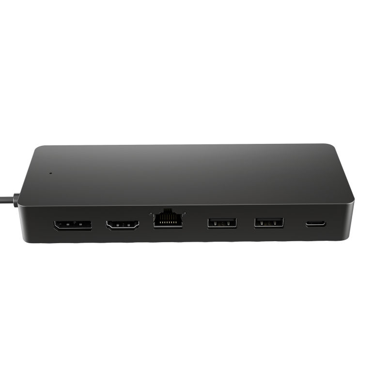 HP Concentrateur multiport USB-C universel. Technologie de connectivité: Avec fil, Interface de l'hôte: USB 3.2 Gen 2 (3.1 Gen 2) Type-C. LAN Ethernet : taux de transfert des données: 10,100,1000 Mbit/s. Couleur du produit: Noir, Type HD: 4K Ultra HD, Taux de d'actualisation maximal: 60 Hz. Consommation électrique typique: 65 W. Prise en charge du système d'exploitation Windows: Windows 10, Windows 11