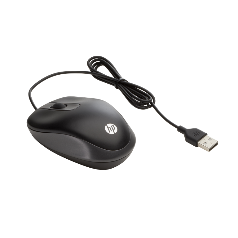 HP Souris de voyage USB. Format: Ambidextre. Technologie de détecteur de mouvement: Optique, Interface de l'appareil: USB Type-A, Résolution en mouvement: 1000 DPI, Type de boutons: Boutons poussoirs, Quantité de boutons programmables: 2, Type Scroll: Roue. Source d'alimentation: Cable. Couleur du produit: Noir