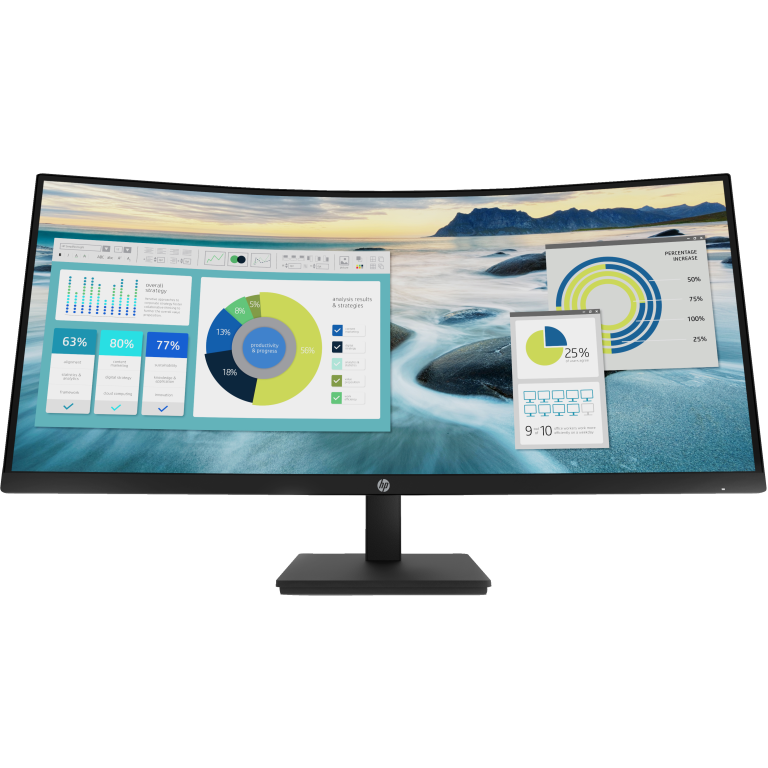 HP Écran incurvé P34hc G4 WQHD USB-C. Taille de l'écran: 86,4 cm (34"), Résolution de l'écran: 3440 x 1440 pixels, Type HD: Wide Quad HD, Technologie d'affichage: LCD, Surface d'affichage: Mat, Temps de réponse: 5 ms, Format d'image: 21:9, Angle de vision horizontal: 178°, Angle de vision vertical: 178°. Haut-parleurs intégrés. Concentrateur USB intégré, Version du concentrateur USB: 3.2 Gen 1 (3.1 Gen 1). Montage VESA, Réglage de la hauteur. Couleur du produit: Noir