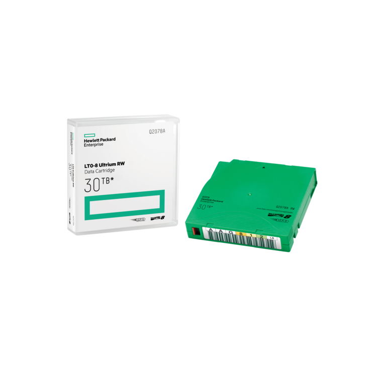 HP LTO-8 Ultrium 30TB RW Data Cartridge. Type de produit: Bande de données vierge, Type de support: LTO, Capacité d'origine: 12 To. Taux de transfert de données: 700 Mbit/s. Taille de la bande magnétique: 1,26 cm, Longueur de la bande: 960 m, Épaisseur de la bande: 5,6 µm