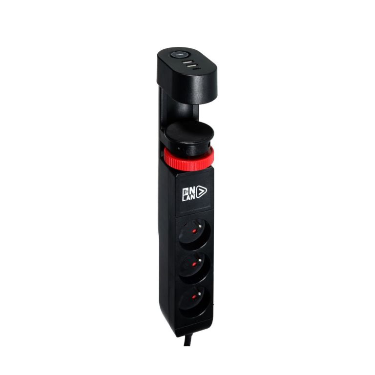 Vous pouvez placer et fixer votre multiprise comme il vous convient grâce à sa vis de serrage facile. Sous le plateau profitez de 3 prises secteur et sur votre bureau 3 prises USB pour charger vos appareils avec simplicité.