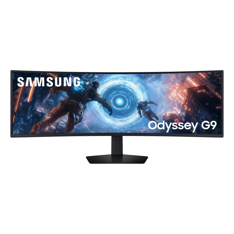 Samsung G91F. Taille de l'écran: 124,5 cm (49"), Résolution de l'écran: 5120 x 1440 pixels, Type HD: Dual QHD, Technologie d'affichage: LCD, Temps de réponse: 1 ms, Format d'image: 32:9, Angle de vision horizontal: 178°, Angle de vision vertical: 178°. Concentrateur USB intégré, Version du concentrateur USB: 3.2 Gen 1 (3.1 Gen 1). Montage VESA, Réglage de la hauteur. Couleur du produit: Noir