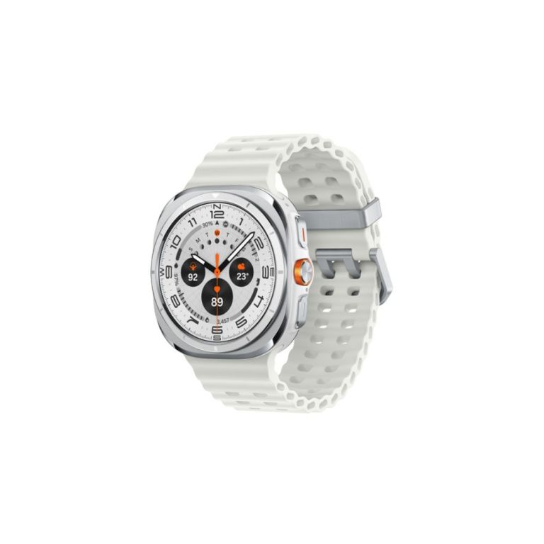 Samsung Galaxy Watch Ultra (2025) (47 mm, LTE). Taille de l'écran: 3,81 cm (1.5"), Technologie d'affichage: AMOLED, Résolution de l'écran: 480 x 480 pixels, Écran tactile. Fréquence du processeur: 1600 MHz. Capacité de la RAM: 2000 Mo, Memoire flash: 64 Go. Wifi. GPS (satellite). Capacité de la batterie: 590 mAh. Poids: 60,5 g. Couleur du bracelet: Blanc, Taille du bracelet: Taille unique. Système d'exploitation installé: Wear OS