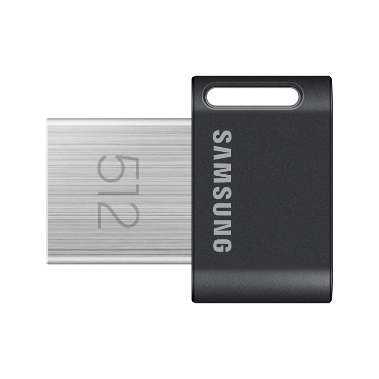 Samsung Clé USB 3.1 FIT Plus 512 Go. Capacité: 512 Go, Interface de l'appareil: USB Type-A, Version USB: 3.2 Gen 1 (3.1 Gen 1), Vitesse de lecture: 400 Mo/s. Format: Sans capuchon. Poids: 3,1 g. Couleur du produit: Noir, Acier inoxydable