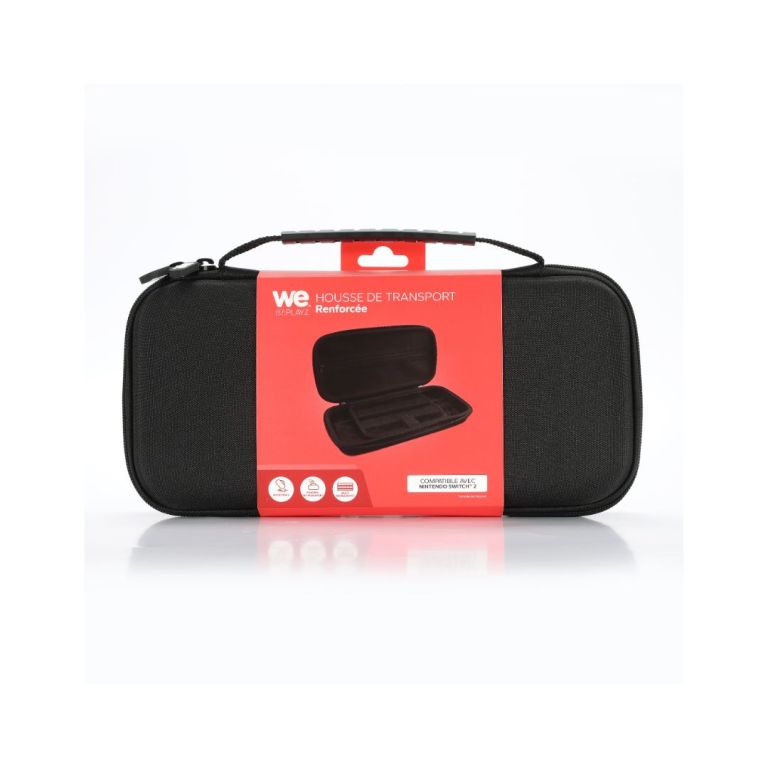 Cette housse de transport WE sera votre allié pour pouvoir transporter votre console Nintendo Switch 2 partout avec vous. Conçue avec des matériaux résistants, cette housse protègera votre console contre toutes les chutes et les chocs. Sa poignée offre une possibilité de la tenir à la main pour une praticité sans égale. Son rembourrage intérieur en velours protègera votre console, jeux et accessoires. Équipée de compartiments, vous pourrez donc partir avec tous vos jeux favoris et vos accessoires indispensables pour des sessions de jeu parfaites.