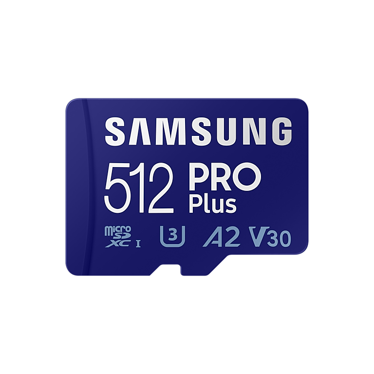 Samsung PRO Plus. Capacité: 512 Go, Type de Carte Flash: MicroSDXC, Classe de mémoire Flash: Classe 10, Type de mémoire interne: UHS-I, Vitesse de lecture: 160 Mo/s, Vitesse d'écriture: 120 Mo/s, Classe de vitesse UHS: Class 3 (U3), Classe de vitesse vidéo: V30. Fonctions de protection: Résistant à l’abrasion, Résistant à un aimant, Résistant aux chocs, Résistant à une..., Couleur du produit: Bleu