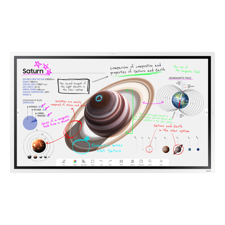 Samsung Flip Pro WM65B Interactive Display. Taille de l'écran: 165,1 cm (65"), Luminosité de l'écran: 350 cd/m², Résolution de l'écran: 3840 x 2160 pixels. Système d'exploitation installé: Tizen, Mémoire utilisateur: 32 Go. Couleur du produit: Gris, Blanc, Norme VESA: 400 x 400 mm, matérial de cadre: Plastique. horaires de service (heures/jours): 12/7. Consommation électrique typique: 192,5 W, Consommation d'énergie (mode veille): 0,5 W, Consommation d 'énergie (en mode veille): 0,5 W