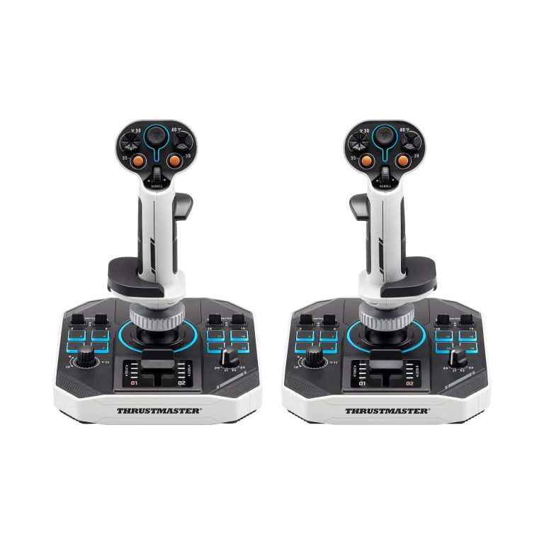 Thrustmaster Sol-R 2 HOSAS Space Sim Duo. Type d'appareil: Manche à air, Plates-formes de jeux prises en charge: PC, Technologie de contrôle des jeux: Analogique/Numérique. Technologie de connectivité: Avec fil, Interface de l'appareil: USB, Connecteur USB: USB Type-C. Couleur du produit: Noir, Blanc. Prise en charge du système d'exploitation Windows: Windows 10, Windows 10 Education, Windows 10 Education x64, Windows 10 Enterprise, Windows 10.... Largeur: 196 mm, Profondeur: 196 mm, Hauteur: 247 mm
